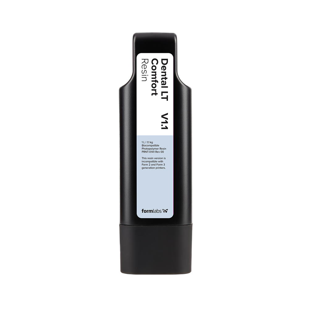 Dental LT Comfort Resin is a long-term biocompatible material for directly 3D printing flexible occlusal splints and night guards in-house, more easily than ever. Printed appliances are easily polished to high optical transparency, and offer enhanced comfort and durability that boosts patient adoption and compliance.