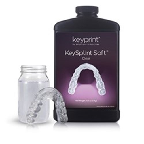 Utilizing unique patent-pending technologies, Keystone Industries has developed a one-of-a-kind 3D printing resin for the fabrication of flexible dental splints, nightguards, and bleaching trays. This DLP-optimized resin is an exceptional printing material, that combines the strength needed to protect teeth against disorders like bruxism with added flexibility for better patient comfort. KeySplint Soft is also easily cleaned by the patient.