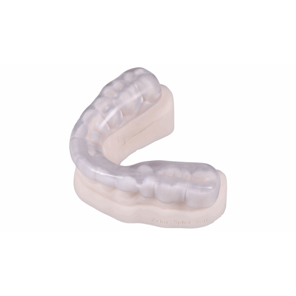 Zirlux Nightguard & Splint Resin- Flexible is a 510K cleared printing resin that is indicated for the fabrication of nightguards, splints, mouthguards, repositioners, and bleaching trays. This DLP-optimised resin is an exceptional printing material, that combines the strength needed to protect teeth against disorders like bruxism with added flexibility for better patient comfort.