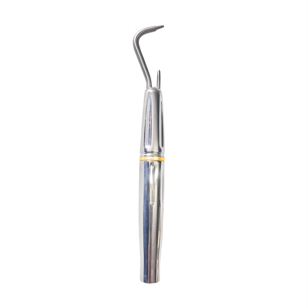 The autoclavable handpiece comes in colour-coded nozzle sizes 0.6mm and 0.8mm. The long-life tungsten carbide nozzles are easily changed to suit the treatment. An entire procedure can be performed without removing the tip from the oral cavity. One handpiece that supplies air, water and treating medium.