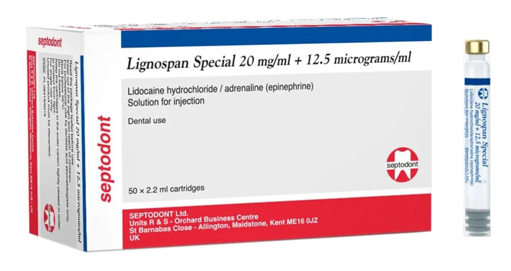 Each cartridge of injectable solution includes a local anaesthetic, sometimes alone and sometimes mixed with a vasoconstrictor such as adrenalin.