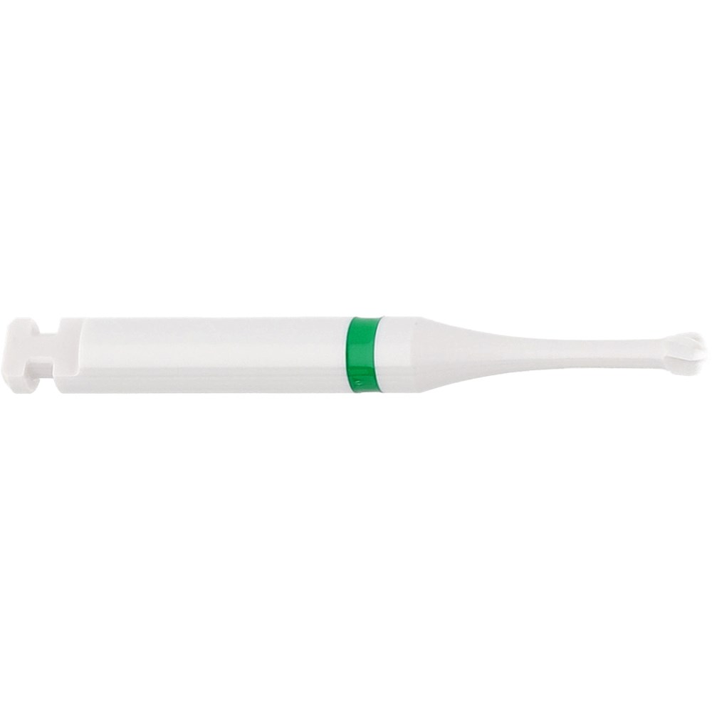 Slim neck and white working part allows it to stand out against the brownish shade of carious dentin