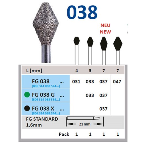 Horico Diamond Bur - 038-047 - Occlusal Reduction - High Speed, Friction Grip (FG), 1-Pack
