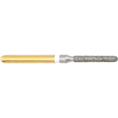 For Grinding of all-ceramic restorations. Friction grip with special reinforced coating to ensure permanent bonding of the diamond grains. Head Diameter size = 012 (1.2mm). Working Length of Diamond Grit Part = 8mm. Due to the high-torque forces in Crown-cutting the bur is recommended for use in Redbands (instead of lower-torque performing air Turbine Highspeeds) at the optimal speed of 160,000rpm. Friction-Grip