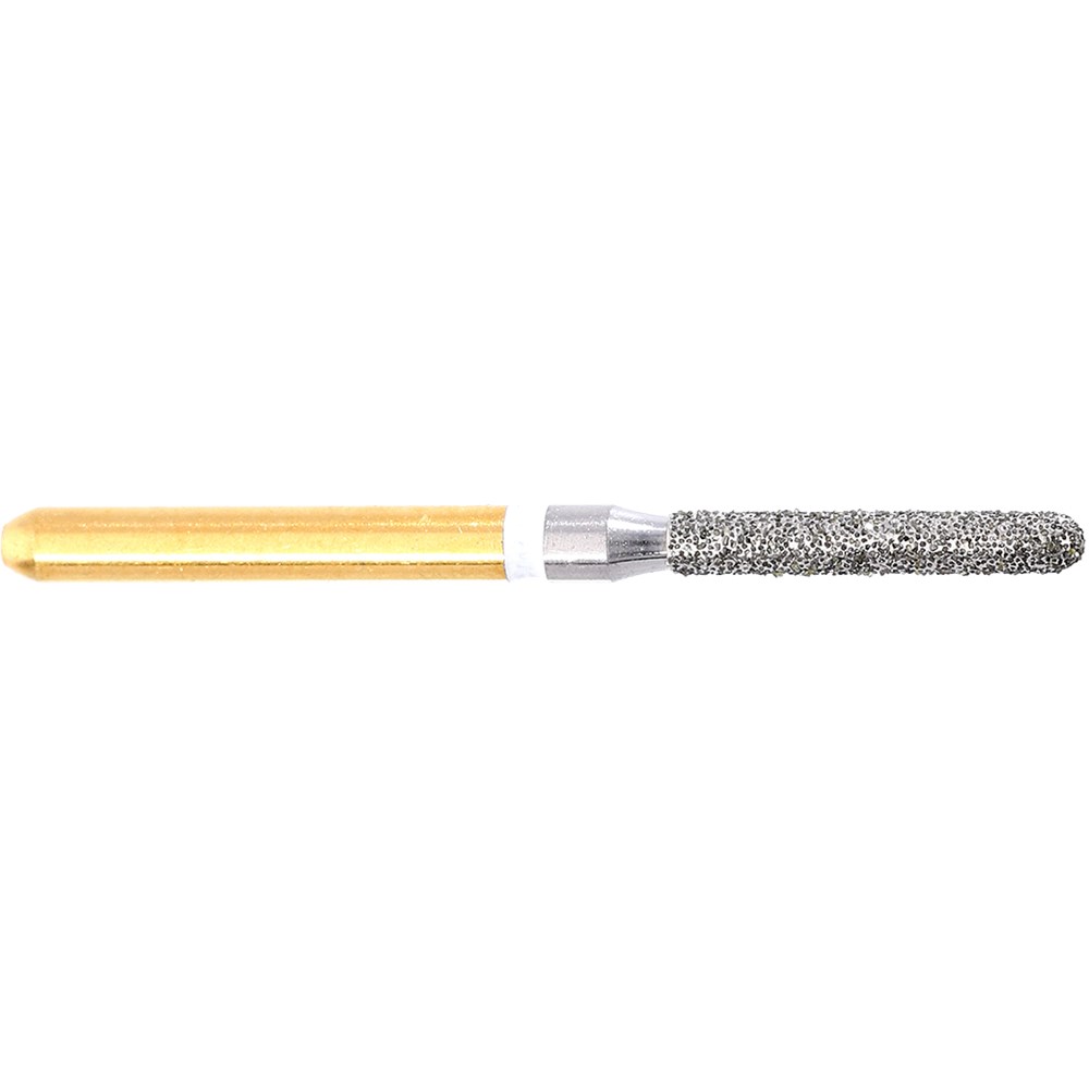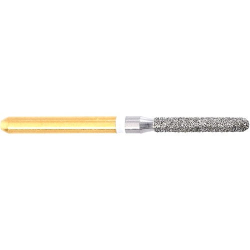 For Grinding of all-ceramic restorations. Friction-Grip with special reinforced coating to ensure permanent bonding of the diamond grains. Head Diameter size = 014 (1.4mm). Working Length of Diamond Grit Part = 8mm. Due to the high-torque forces in Crown-cutting the bur is recommended for use in Redbands (instead of lower-torque performing air Turbine Highspeeds) at the optimal speed of 160,000rpm.Friction-Grip