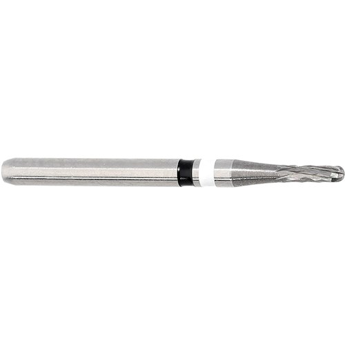 H4MCL cylinder rounded end, tungesten carbide, crown cutter for porcelain fused to metal crowns and metal crowns. FG 314 Shank, size 010 (1mm) diameter, 3.5mm working length. Apply crown remover at an angle of 45 degree.