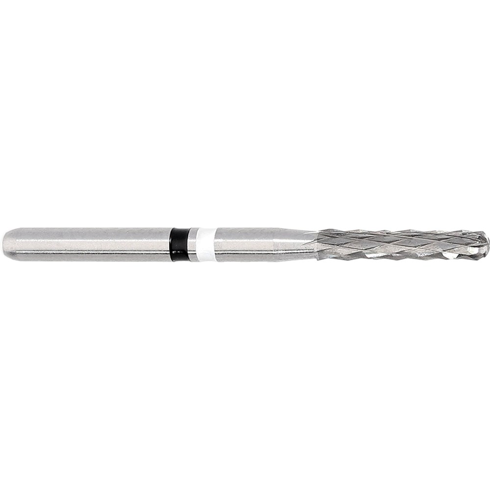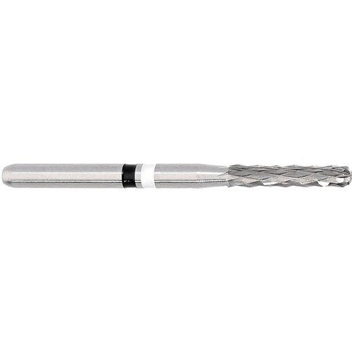 H4MCXXL cylinder rounded end, tungesten carbide, crown cutter for porcelain fused to metal crowns and metal crowns. FG 314 Shank, size 014 (1.4mm) diameter, 8mm working length. Apply crown remover at an angle of 45 degree.