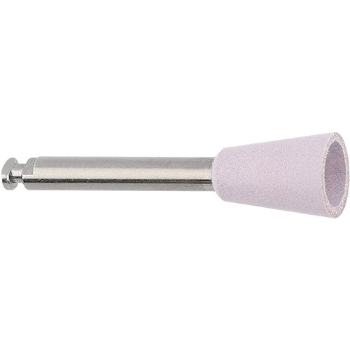 Composite polisher interspersed with diamond grit used with spray coolant. Cup, medium, RA 204, with 055 diameter and 8mm working length.