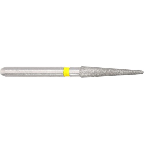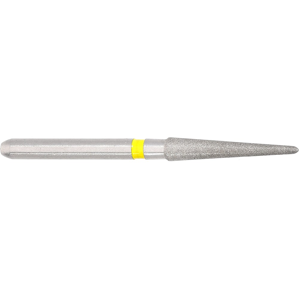 Tapered pointed, extra fine grit, FG 314 diamond, 018 diameter with 10mm working length and 3.6 degree taper for finishing crown preparation or working on filling material. Matches H135/FS9 carbide finisher series.