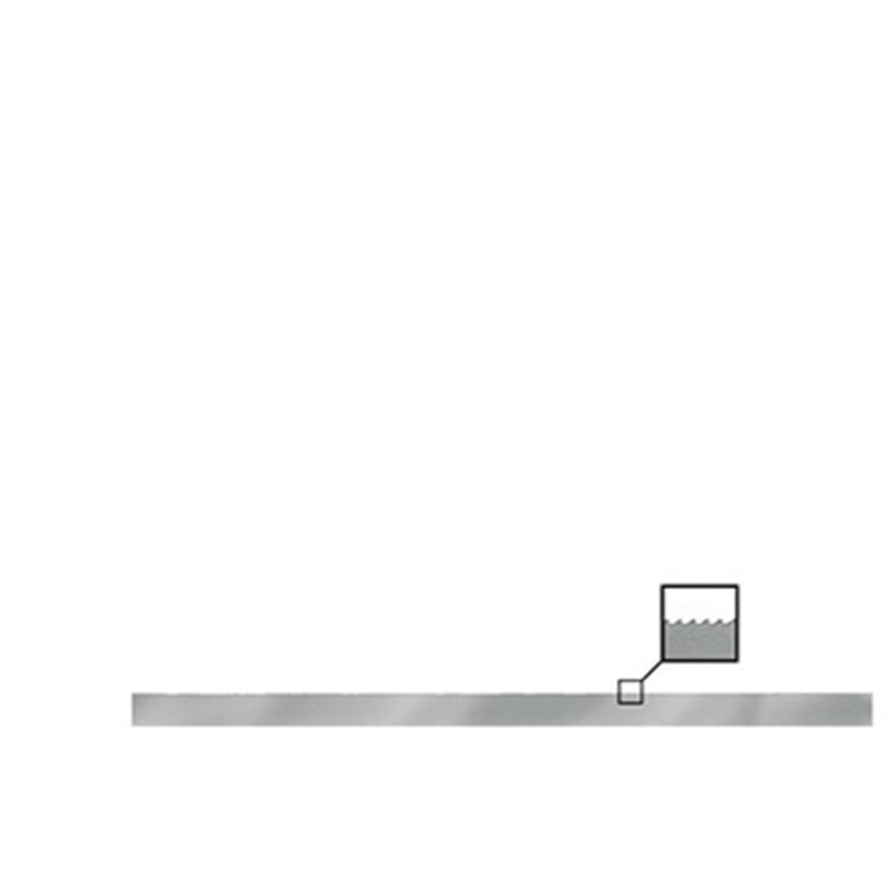 Separating strip for interproximal use. Stainless steel serrated on one edge and highly flexible for interproximal separation. Autoclavable, reusable, can be cut to desired length with scissors.