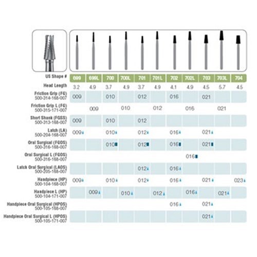 Kerr Jet Tungsten Carbide Bur - 703-021 - Taper Fissure - Oral Surgical - High Speed, Friction Grip (FG), 5-Pack