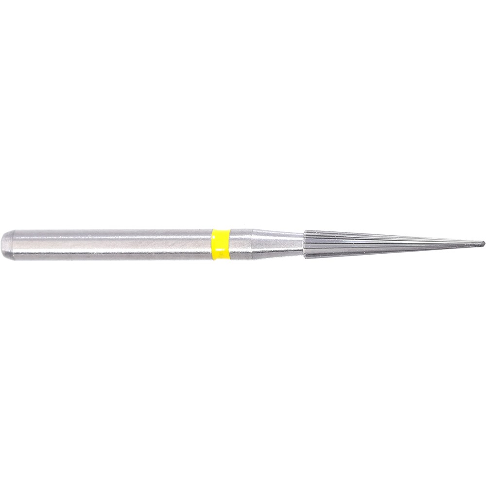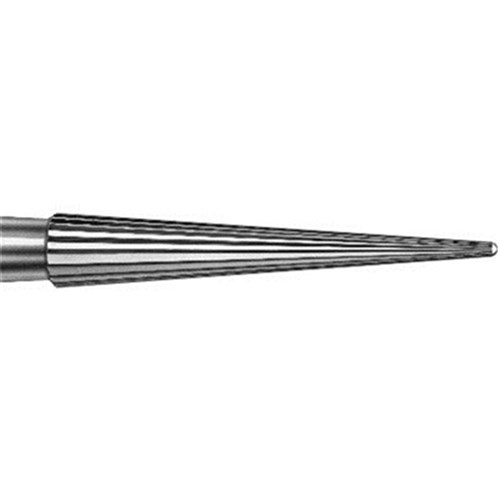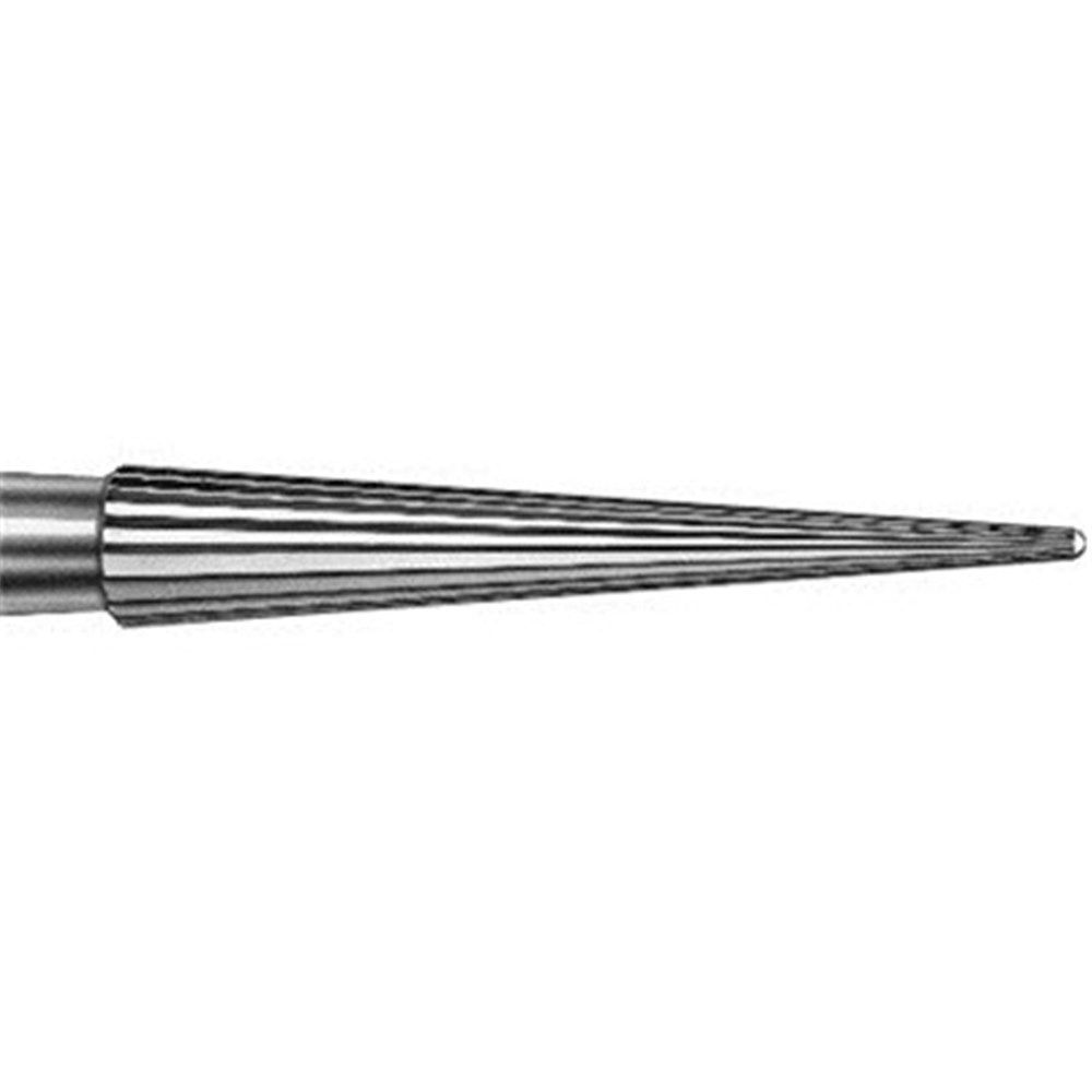 Tungsten carbide flame FG bur. 16 Blades, extra fine, safe end. Size 014 with 9mm working length. Matches 859EF / FSD9EF diamond series.