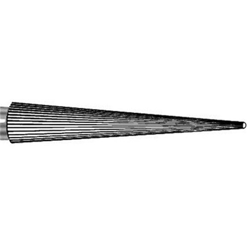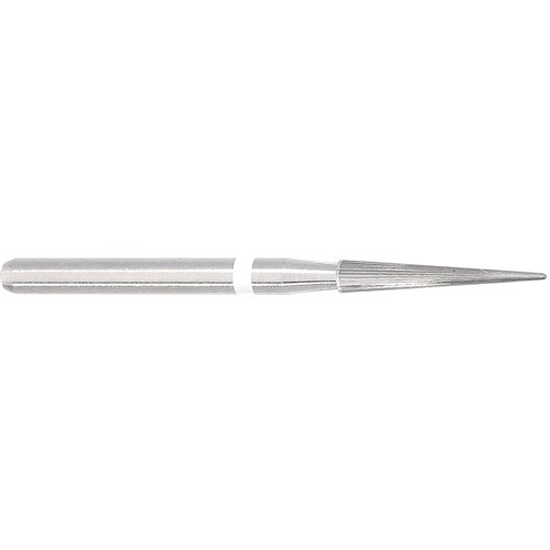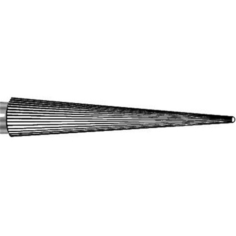 Tungsten carbide flame FG bur. 30 Blades, ultra fine, safe end. Size 014 with 9mm working length. Matches 859UF / FSD9UF diamond series.