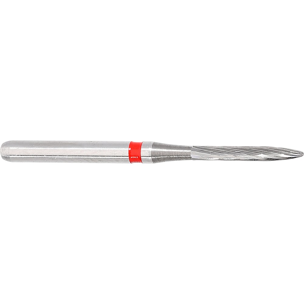 H48L fine flame tungsten carbide for working on finishing fillings. FG 314 shank, Size 010 (1.0mm) diameter, 12 blades, working length 8mm.