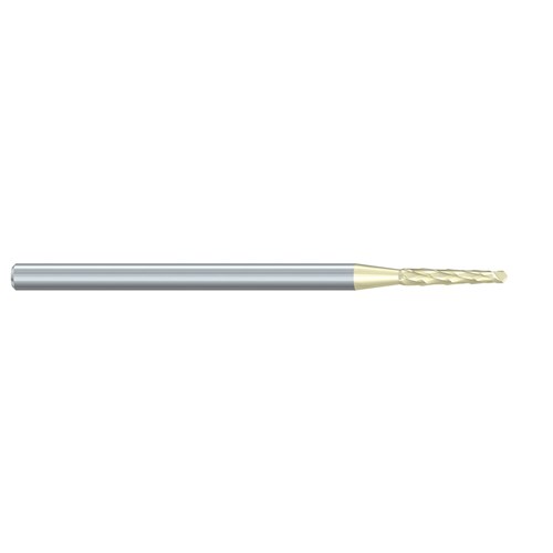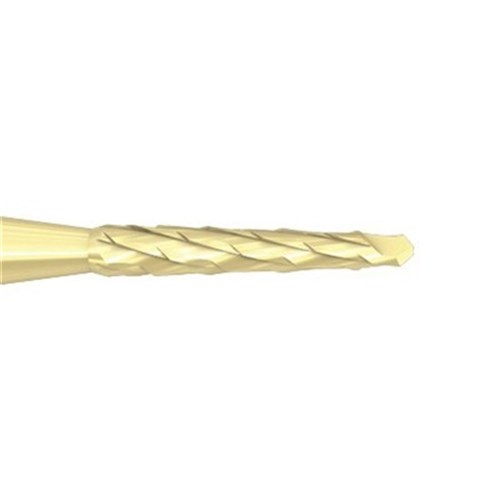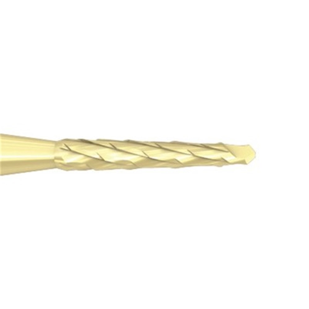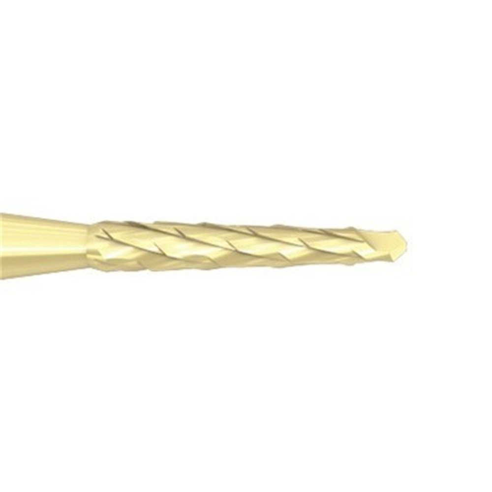 Oral Surgery tungsten carbide, Lindemann bone cutter H162AZ with special staggered toothing, ZrN coated. HP 104 shank for straight surgical handpiece, size 016 (1.6mm) diameter with 9mm working length.