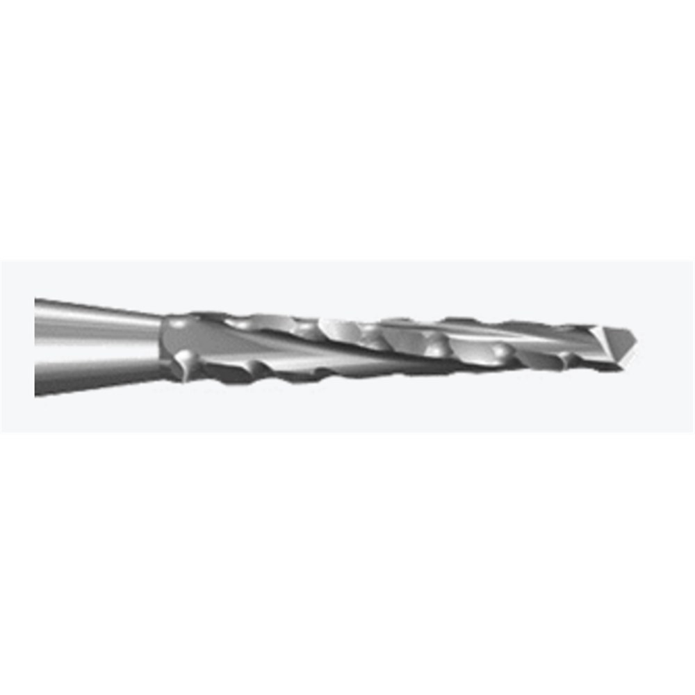 Oral Surgery tungsten carbide, tapered bone cutter H162ST with maximum cutting performance thanks to special ST toothing. HP 104 shank for straight surgical handpiece, size 016 (1.6mm) diameter with 9mm working length.