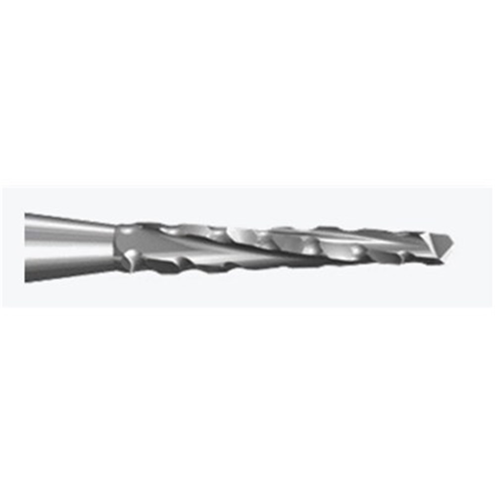 Oral Surgery tungsten carbide, tapered bone cutter H162ST with maximum cutting performance thanks to special ST toothing. RA 204 shank right-angle handpiece, size 016 (1.6mm) diameter with 9mm working length.