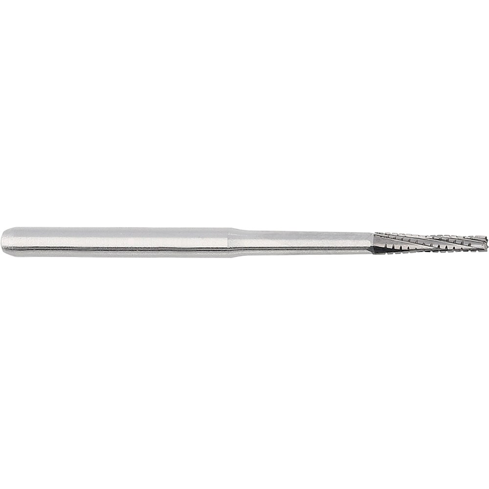 H254 tapered fissure, oral surgery tungsten carbide bone cutter for leaf implants. FG 314 shank, size 012 (1.2mm diameter) and 6mm working length. US number 701XXL.