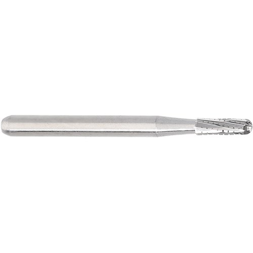 H31R cylinder round with cross cut, tungsten carbide cutter for cavity preparation. FG 314 shank, size 012 (1.2mm) diameter with 4.2mm working length. US number 1558