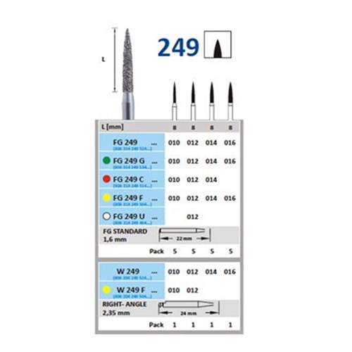 Horico Diamond Bur - 249F-010 - Flame Pointed - Extra Fine - High Speed, Friction Grip (FG), 1-Pack