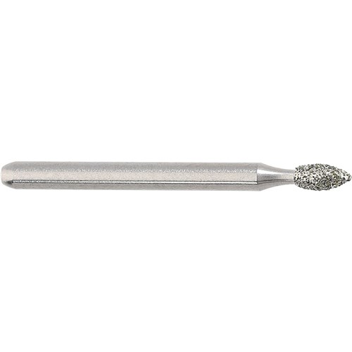 Medium Grit (107um) friction grip. Bud shape for Occlusal/Lingual Reduction. Head Diameter size = 016 (1.6mm). Working Length of Diamond Grit Part = 3mm. Recommended Max. Speed = 300,000rpm.