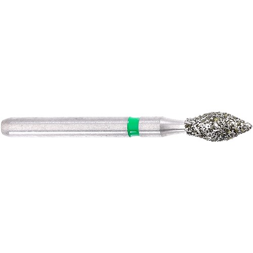 Bud Coarse Grit (151um) friction grip diamond for Occlusal/Lingual Reduction. Head Diameter size = 023 (2.3mm). Working Length of Diamond Grit Part = 5mm. Recommended Max. Speed = 300,000rpm.