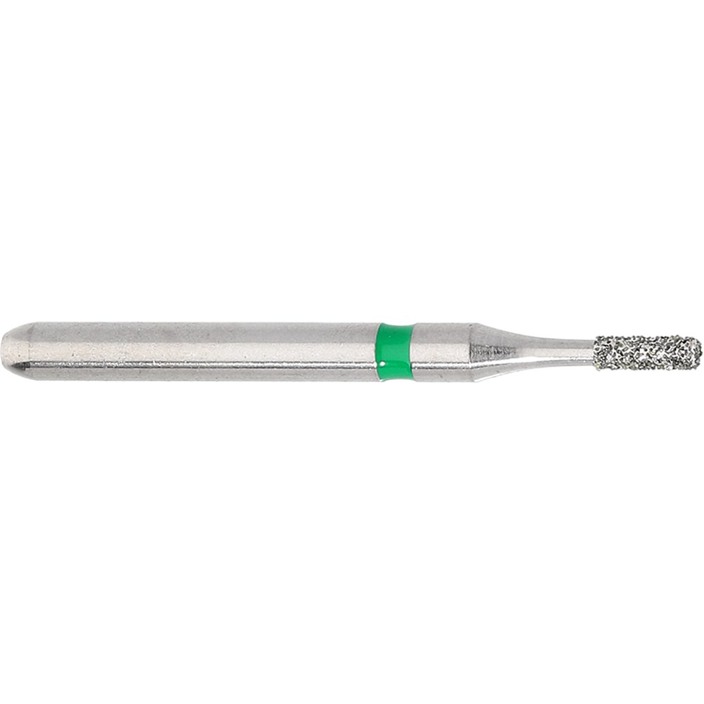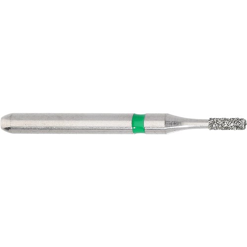 Friction grip coarse Grit (151um) cylinder short, cavity prep, sharp edge diamond. Head Diameter size = 009 (0.9mm). Working Length 3mm.
