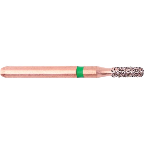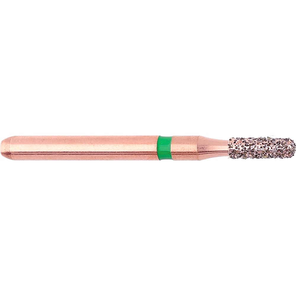 Coarse Grit (151um) cylinder short, rounded edge friction grip diamond for Cavity Preparation. Head Diameter size = 014 (1.4mm). Working Length 4mm.
