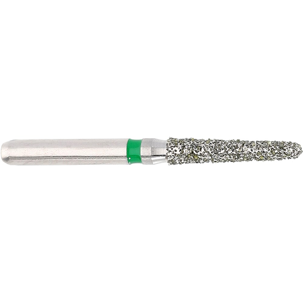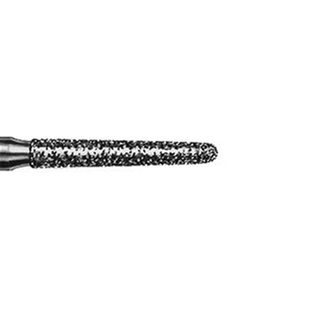 Tapered chamfer, round, course grit, friction grip short / paedo. Diameter head 016 (1.6mm) with 2 degree angle and 8mm working length