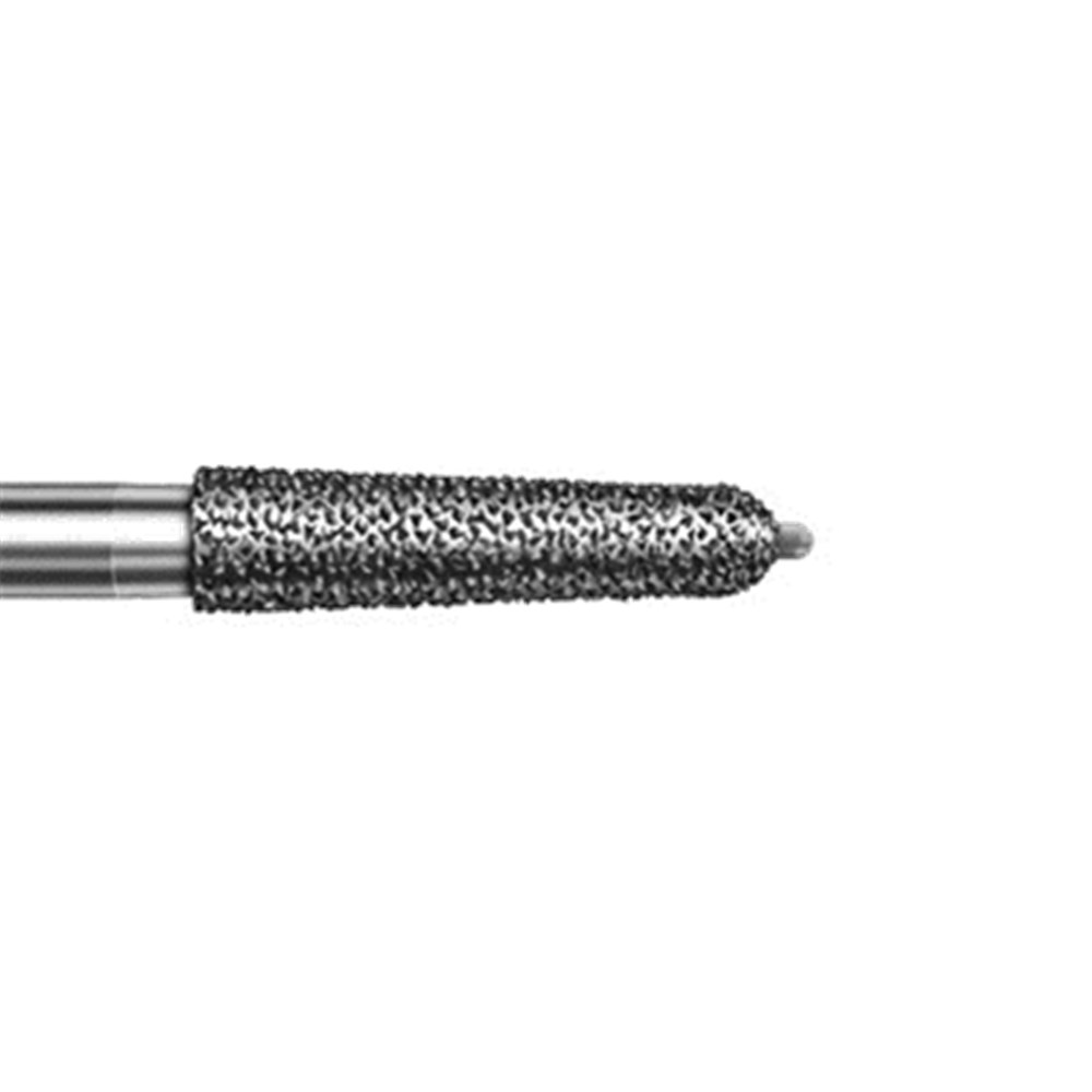 Crown Prep, tapered chamfer round with guide pin. Creates a cutting depth of 0.54mm. Head diameter 021 (2.1mm) with 2 degree angle and working length 8mm (plus 0.5mm tip)