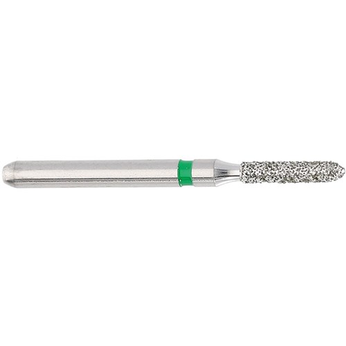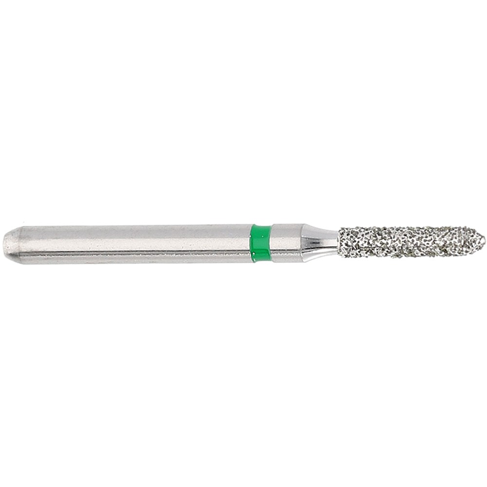 Short parallel chamfer, torpedo, course grit, friction grip diamond. Head diameter 012 (1.2mm) with 6mm working length. Maximum recommended speed 160,000 rpm. Matches H282 carbide finisher series