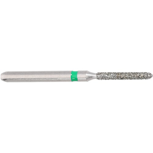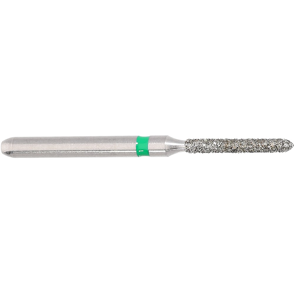 Parallel chamfer, torpedo course grit, friction grip diamond. Head diameter 010 (1.0mm) and 8mm working length. Maximum recommended speed 160,000 rpm. Matches H283 carbide finisher series.