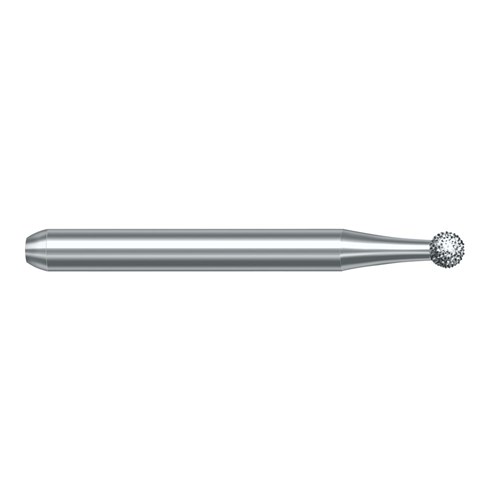 Medium grit round diamond with friction grip 313 short / paedo shank. Head diameter 014 (1.4mm).