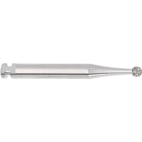 Medium grit round diamond with RA 204 shank. Head diameter 016 (1.6mm). Maximum recommended speed 100,000 rpm.