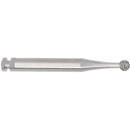 Medium grit round diamond with RA 204 shank. Head diameter 018 (1.8mm). Maximum recommended speed 100,000 rpm.