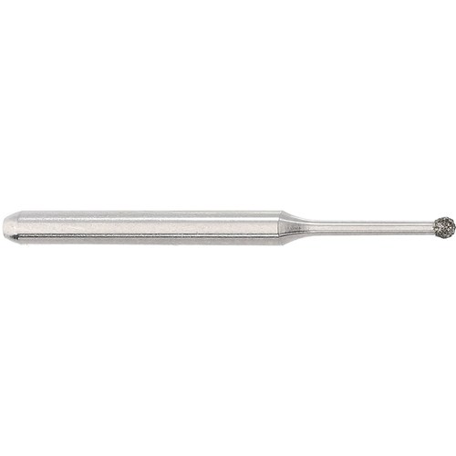 Medium grit micro round diamond friction grip shank. Head diameter 010 (1.0mm). Maximum recommended speed 160,000 rpm.