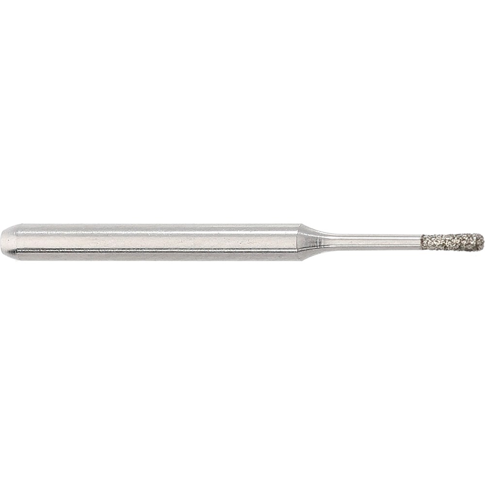 Microprep pear friction grip, medium grit diamond. Head diameter 008 (0.8mm) with working length 2.7mm. Maximum recommended speed 160,000 rpm.