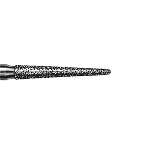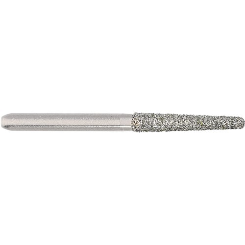 850 Tapered chamfer long, crown preparation bur, medium grit FG 314 diamond, 018 diameter, 10mm working length and 2 degree taper.
