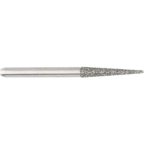 Tapered pointed, medium grit, FG 314 diamond, 018, 1.8mm diameter with 10mm working length and 3.6 degree taper for crown preparation. Matches H135/FS9 carbide finisher series.