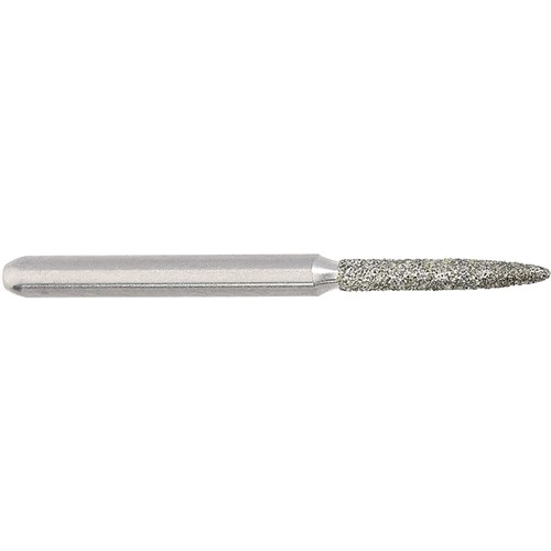Flame, medium grit, FG 314 diamond, 012, 1.2mm diameter with 8mm working length for feather edge crown preparation, working on fillings. Matches H48L carbide finisher series.