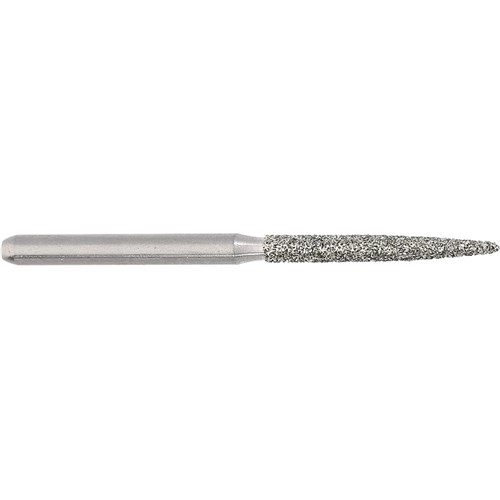Flame extra long, medium grit, FG 314 diamond with 014 diameter and 13mm working length for crown preparation.