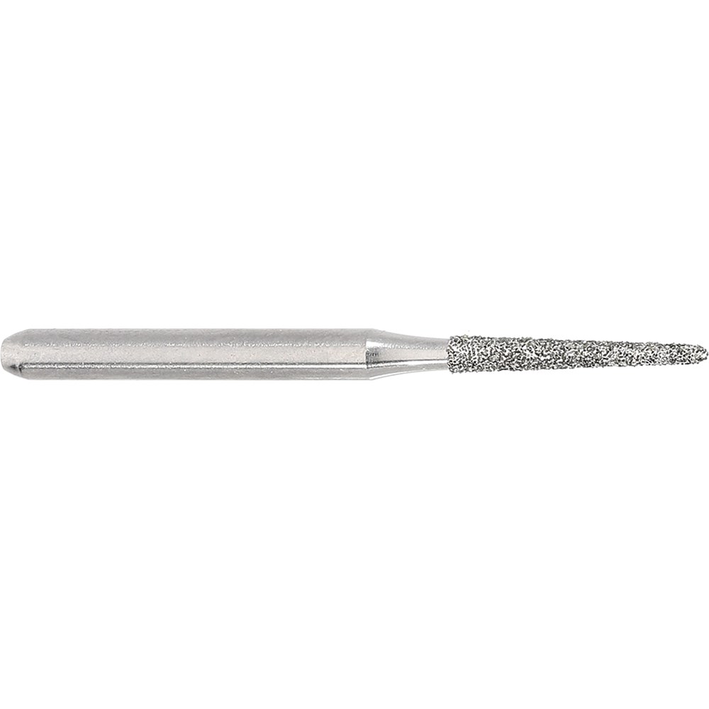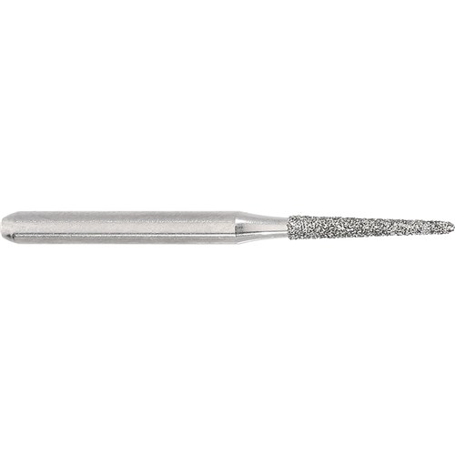 Tapered chamfer round medium grit, friction grip diamond size 012 (1.2mm) diameter with 8mm working length and 2 degree angle for crown preparation