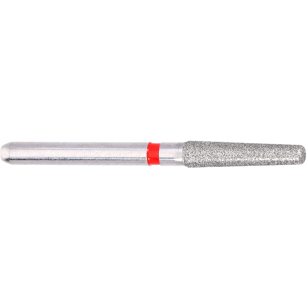 Tapered shoulder, rounded edge, crown preparation finishing bur. Fine grit, FG 314, 018 diameter, 8mm working length with 2 degree taper. Matches H336 carbide finisher series.