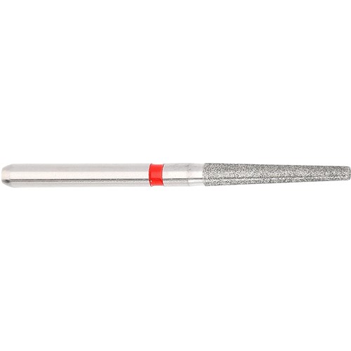 Long tapered shoulder for finishing crown preparation. Fine grit, FG 314, 016 diameter, 10mm working length with 1.8 degree taper.