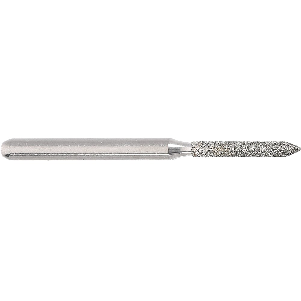 Crown preparation, cylinder with beveled tip. Medium grit, FG 314, 012 diameter with 8mm working length.