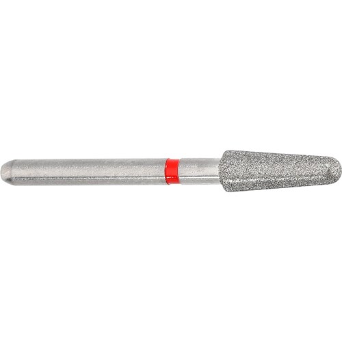Cavity preparation or crown preparation finishing diamond. Short tapered chamfer round, fine grit, FG 314, 025 diameter, 7mm working length with 4 degree taper.