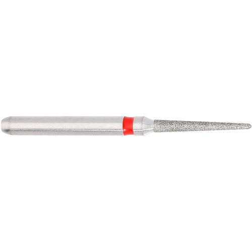 Pointed fine grit FG diamond 010, working length 8mm with 2 degree angle. Maximum recommended speed 300,000rpm, pk 5.