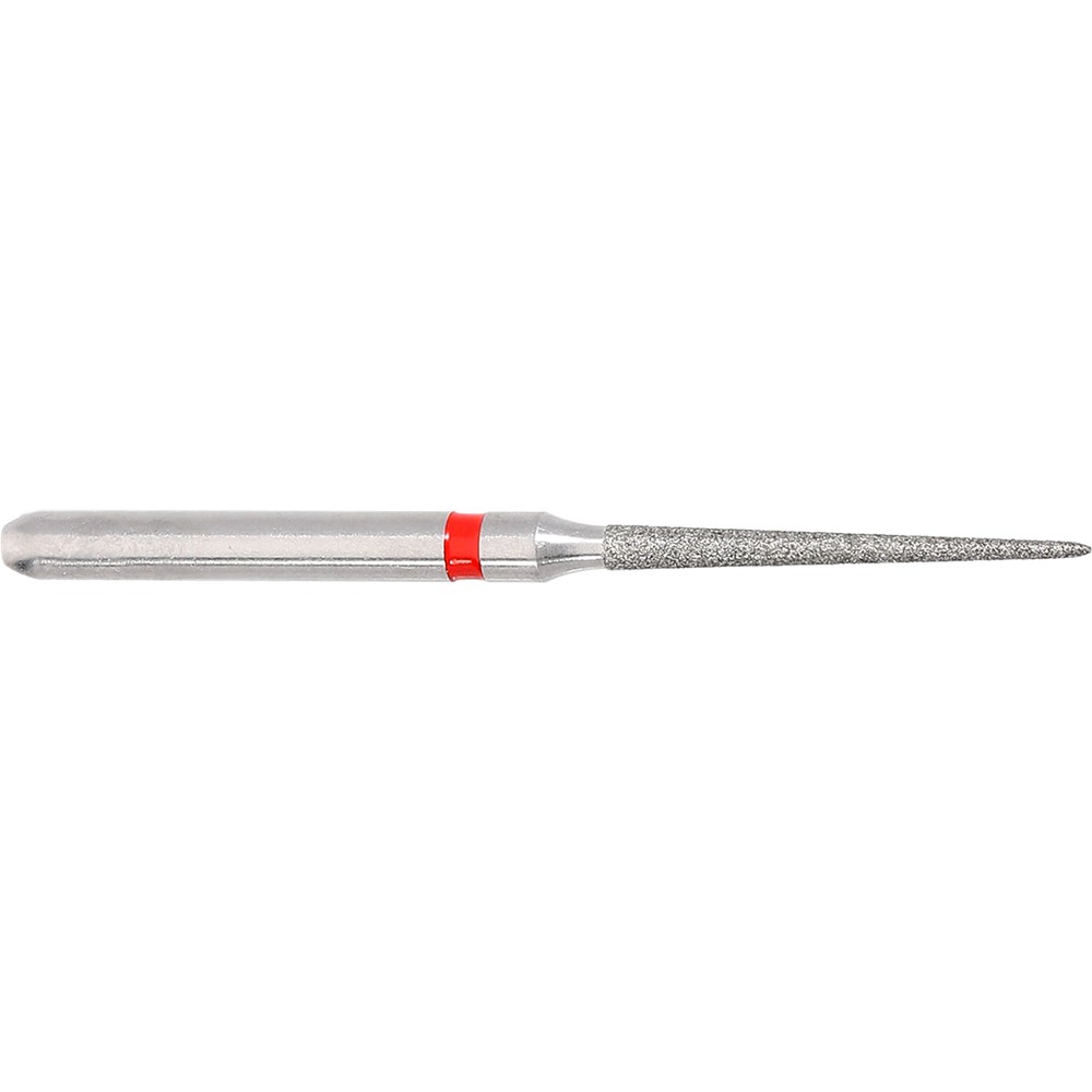 Tapered pointed finishing diamond for crown preparation of working on filling material. Fine grit, FG 314, 010 diameter, working length 11mm with a 2 degree taper. Matches H135/FS9 carbide finisher series.