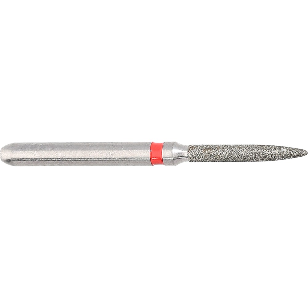 Flame finishing diamond for finishing feather edge crown preparation or working on filling material. Fine grit, FG 314 with 012 diameter and 8mm working length. Matches H48L carbide finisher series.