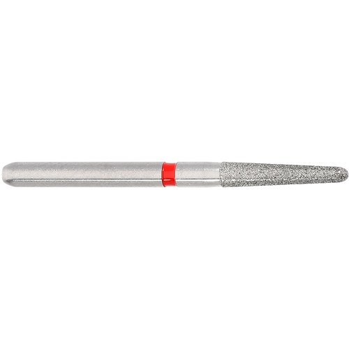 Tapered round fine grit, friction grip diamond size 012 (1.2mm) diameter with 8mm working length and 2 degree angle.